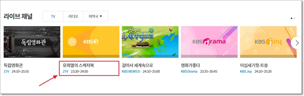 KBS2에서 하는 드라마나 방송을 보고 싶으시다면 위 화면에 나오는 2TV를 누르시면 됩니다.