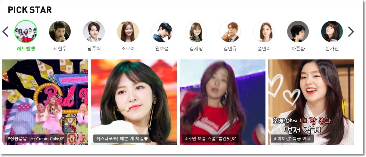 그리고 이외에도 많은 영상들을 볼 수 있는데요. 중요한 것은 내가 좋아하는 스타를 선택할 수 있다는 것입니다.