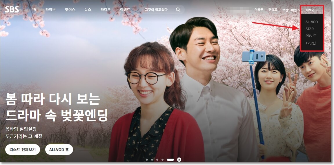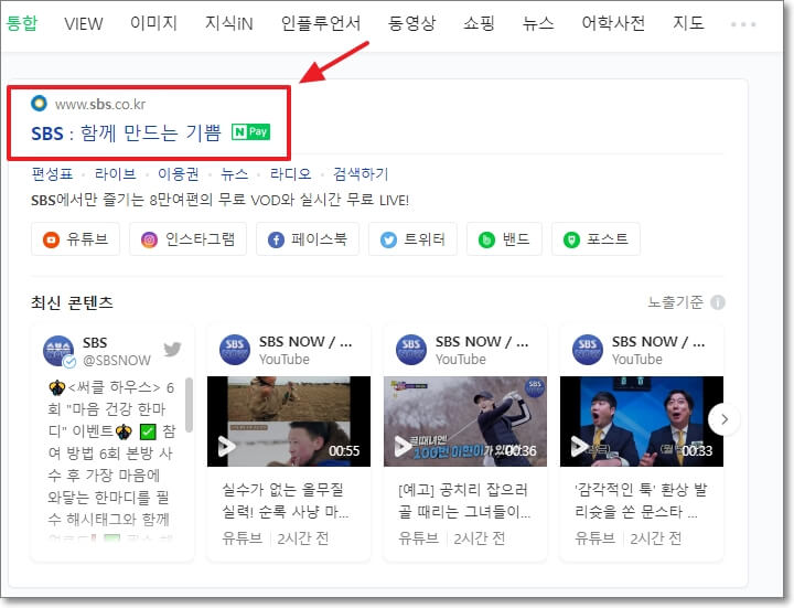 검색창에 SBS를 검색하시면 SBS 홈페이지 주소가 나옵니다. 아래와 같은 화면이 나오는데요.