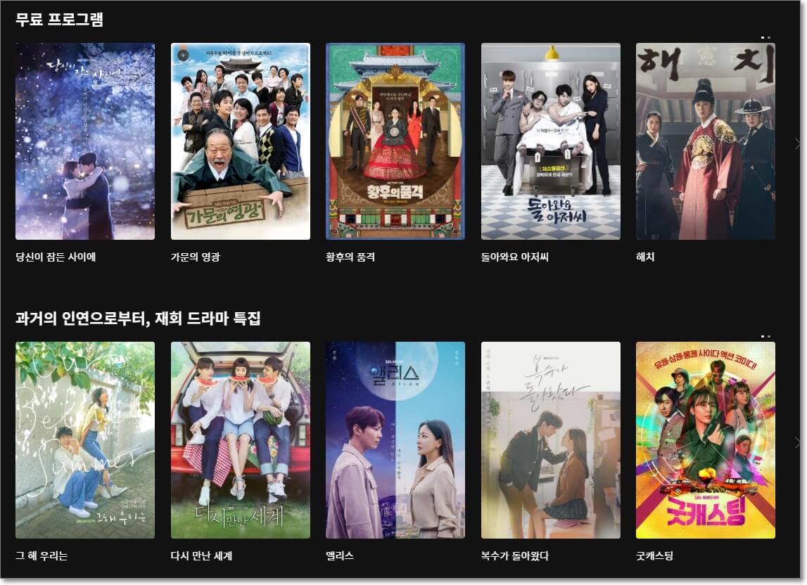 뿐만 아니라 무료프로그램도 시청할 수 있는데요. 예전에 했던 드라마들을 무료로 시청할 수 있습니다.