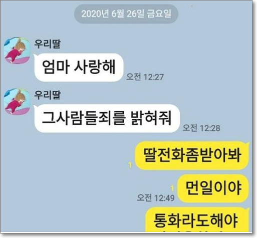 미래통합당 이용 의원에 의하면 최숙현 선수는 지난달 26일 새벽 숙소에서 사망했습니다. 사망하기 전 엄마에게 마지막으로 남긴 말은 '엄마 사랑해' '그 사람들 죄를 밝혀줘'였는데요.